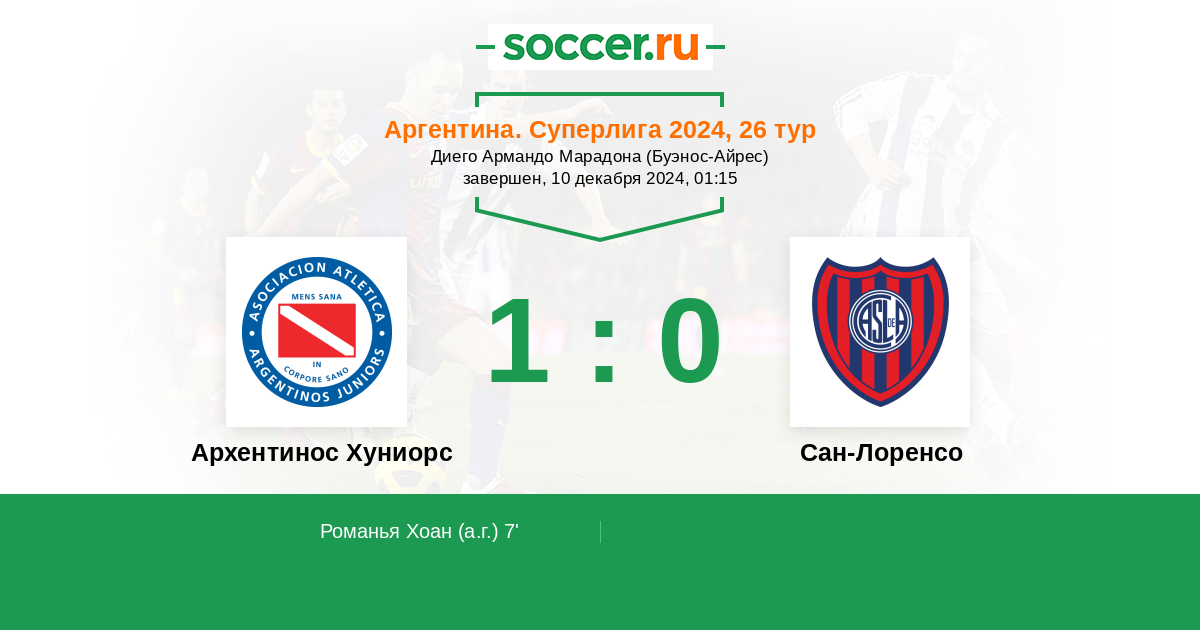 Архентинос Хуниорс - Сан-Лоренсо: обзор матча 10 декабря 2024