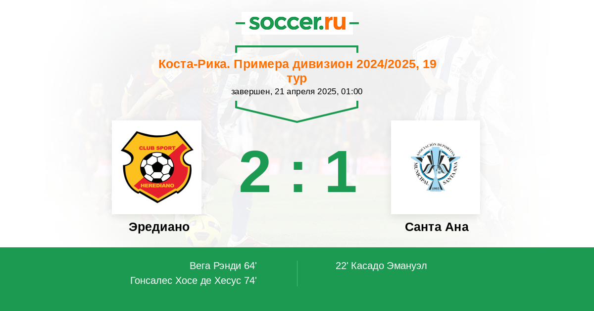 Эредиано - Санта Ана: обзор матча 21 апреля 2025
