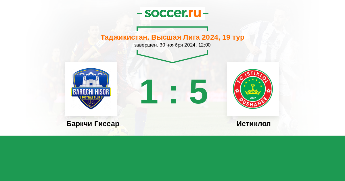 Баркчи Гиссар - Истиклол: обзор матча 30 ноября 2024