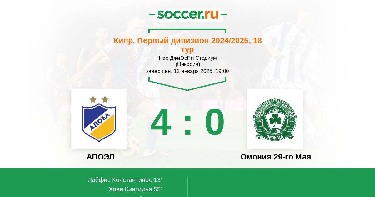АПОЭЛ - Омония 29-го Мая: обзор матча 12 января 2025