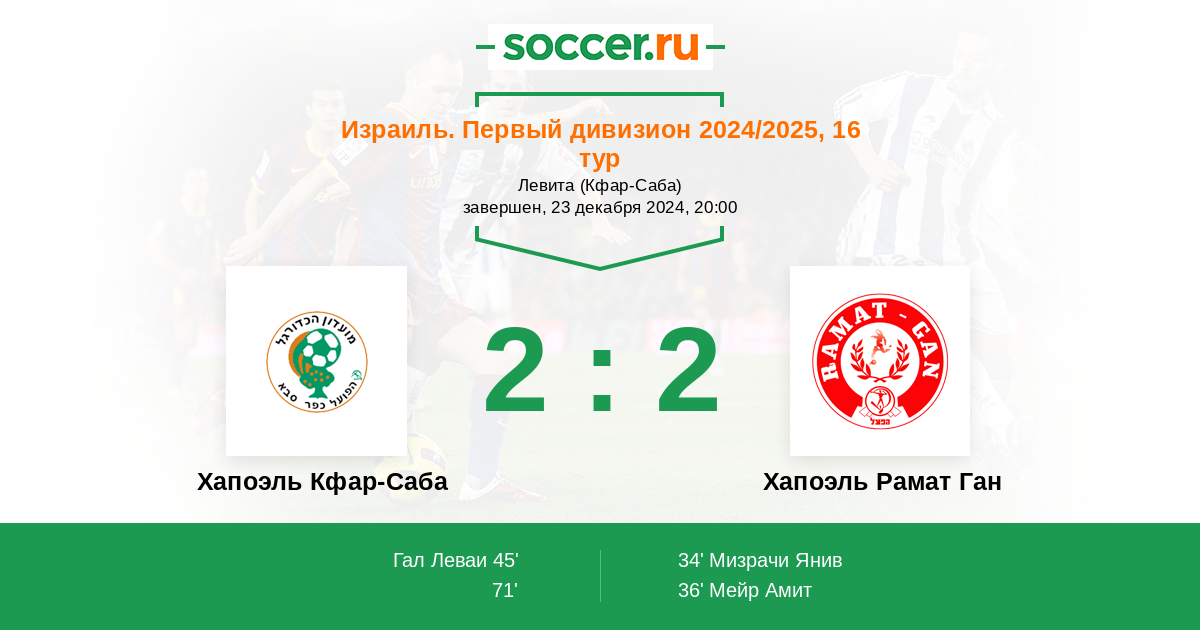 Хапоэль Кфар-Саба - Хапоэль Рамат Ган: обзор матча 23 декабря 2024