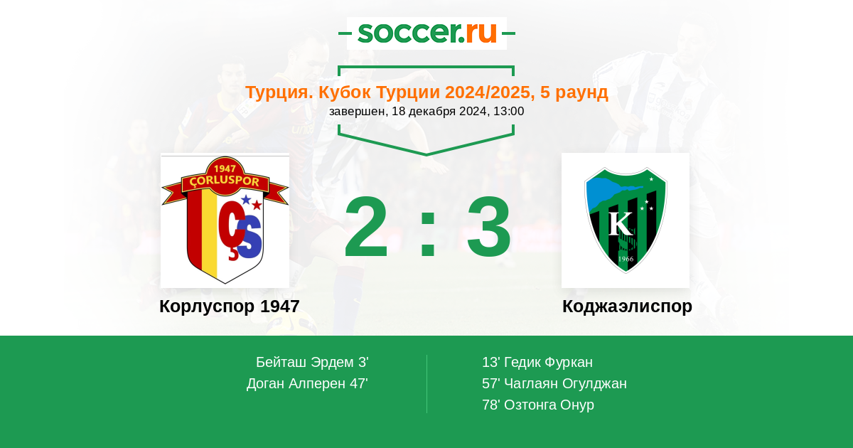 Корлуспор 1947 - Коджаэлиспор: обзор матча 18 декабря 2024