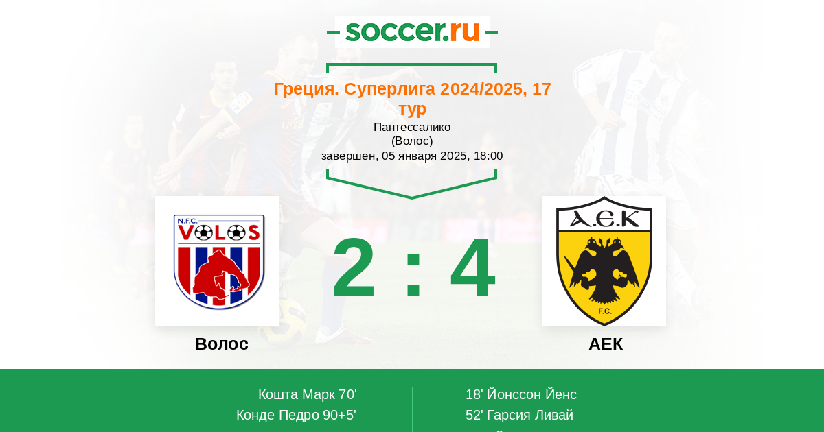 Волос - АЕК: обзор матча 5 января 2025