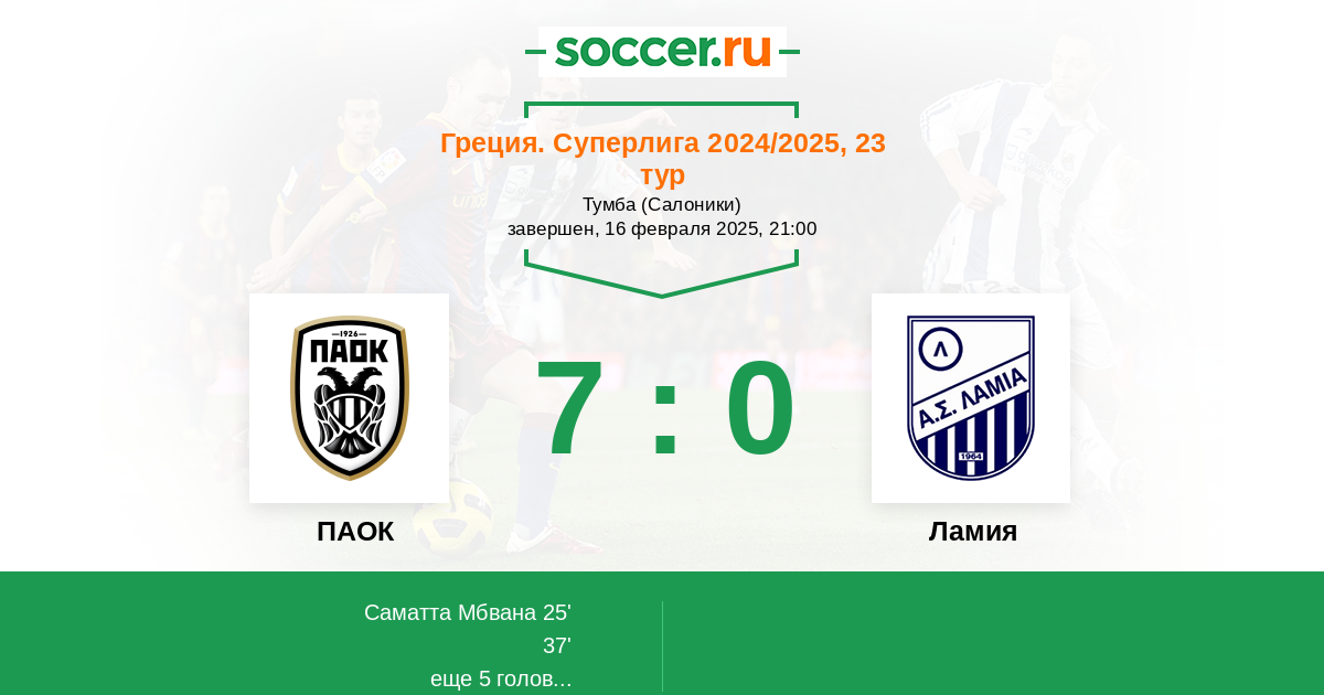 ПАОК - Ламия: обзор матча 16 февраля 2025