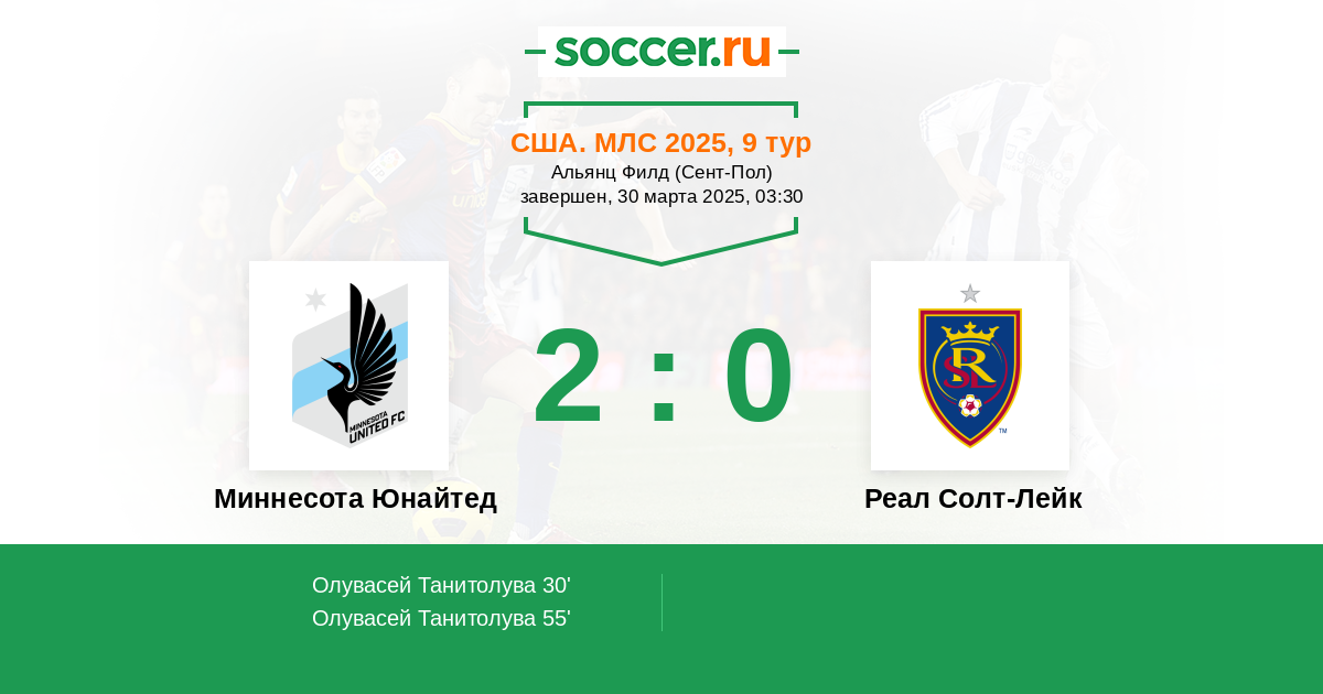 Миннесота Юнайтед - Реал Солт-Лейк: обзор матча 30 марта 2025