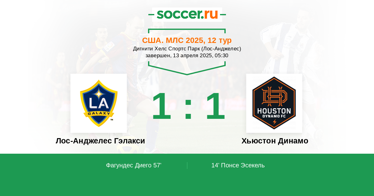 Лос-Анджелес Гэлакси - Хьюстон Динамо: обзор матча 13 апреля 2025