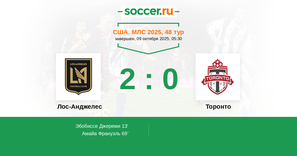 Лос-Анджелес - Торонто: обзор матча 9 октября 2025