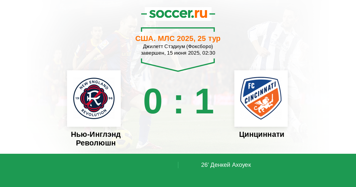Нью-Инглэнд Революшн - Цинциннати: обзор матча 15 июня 2025