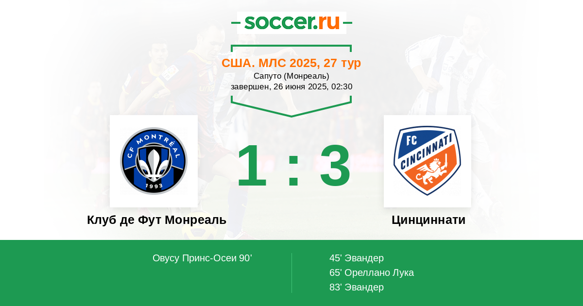Клуб де Фут Монреаль - Цинциннати: обзор матча 26 июня 2025