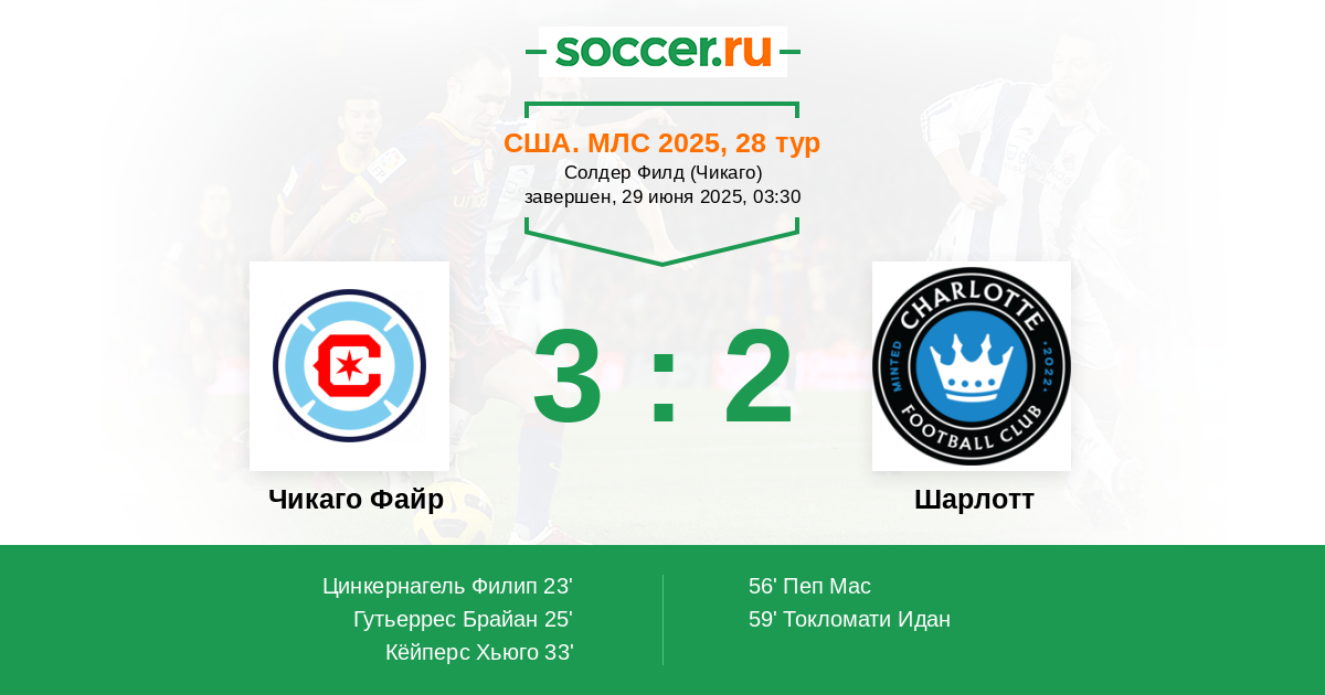 Чикаго Файр - Шарлотт: обзор матча 29 июня 2025