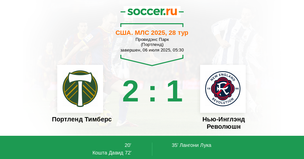 Портленд Тимберс - Нью-Инглэнд Революшн: обзор матча 6 июля 2025