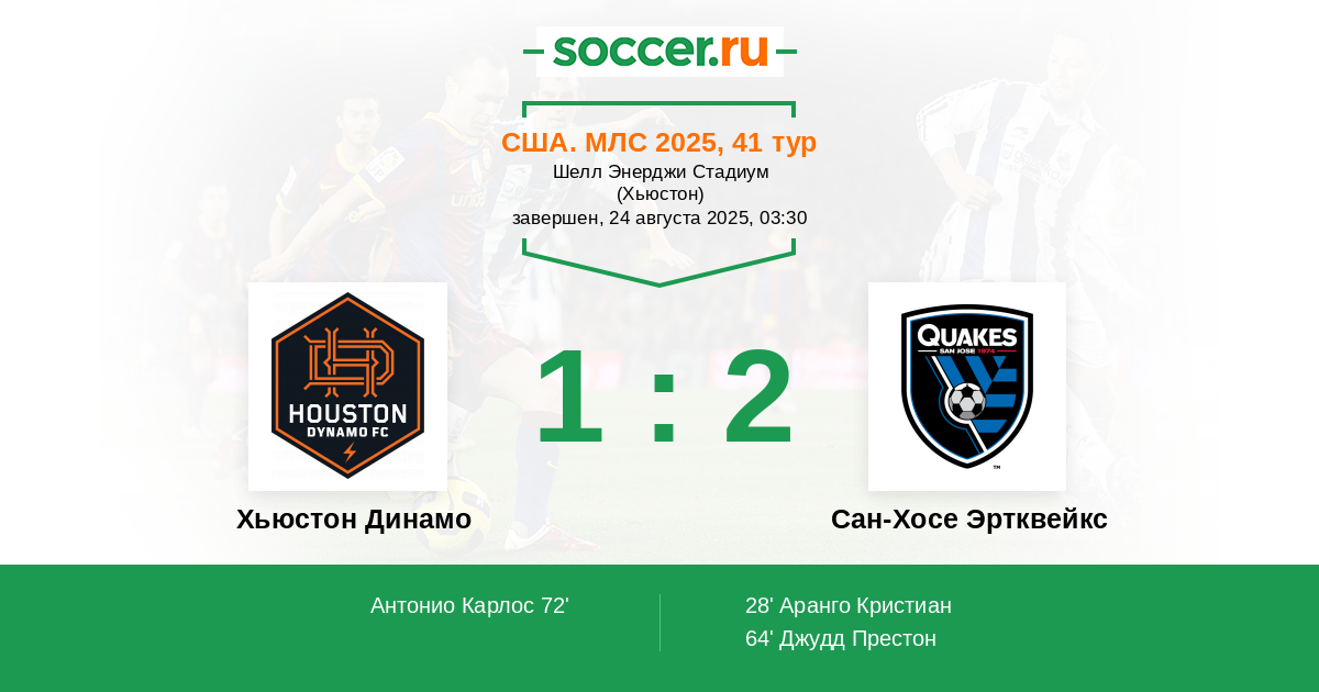 Хьюстон Динамо - Сан-Хосе Эртквейкс: обзор матча 24 августа 2025