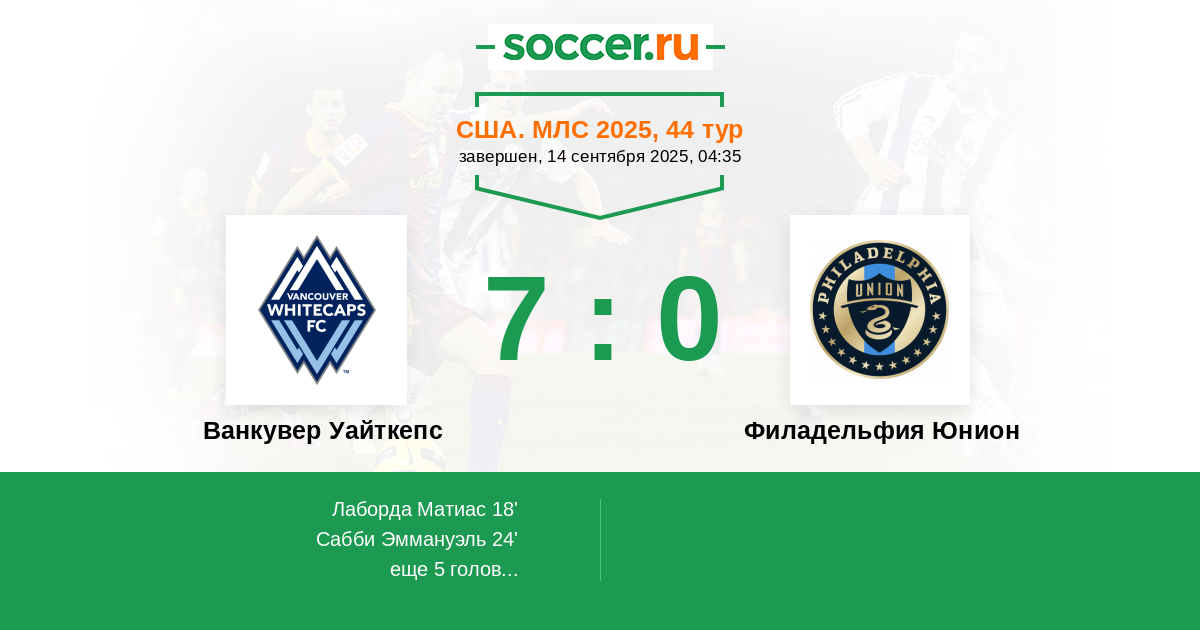 Ванкувер Уайткепс - Филадельфия Юнион: обзор матча 14 сентября 2025