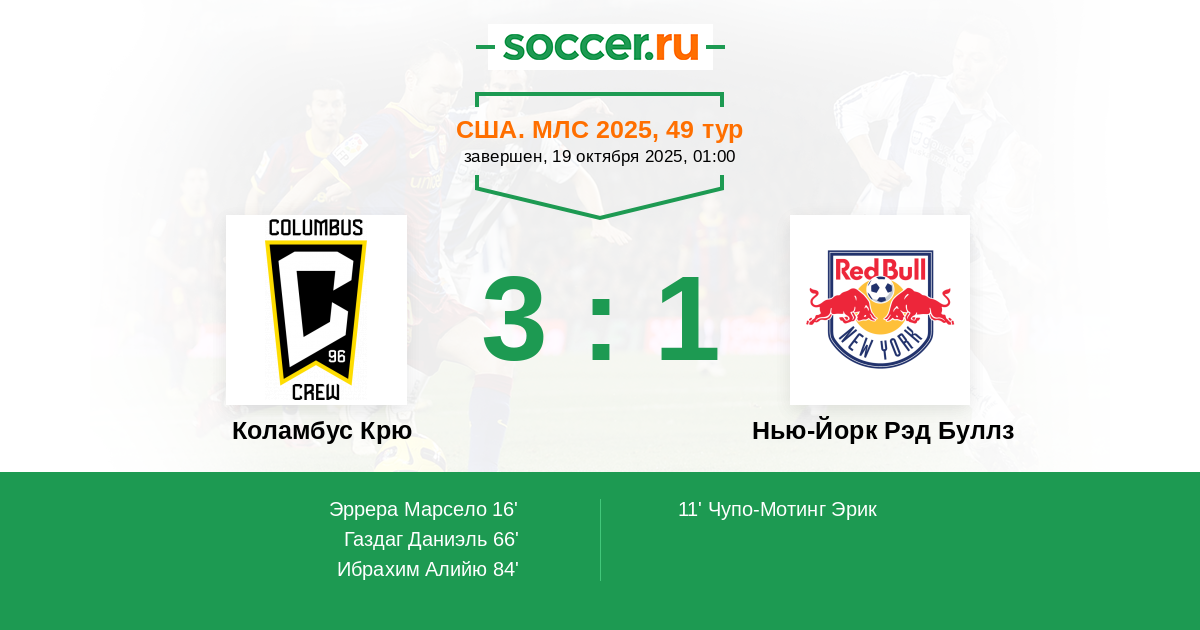 Коламбус Крю - Нью-Йорк Рэд Буллз: обзор матча 19 октября 2025