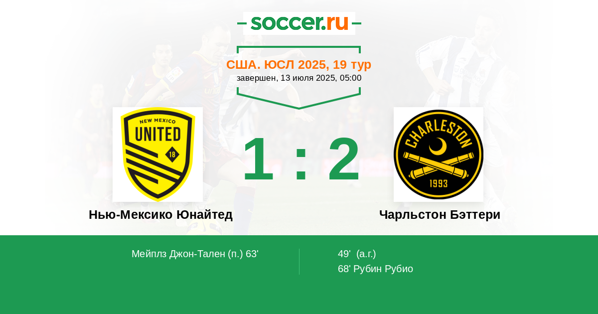 Нью-Мексико Юнайтед - Чарльстон Бэттери: обзор матча 13 июля 2025