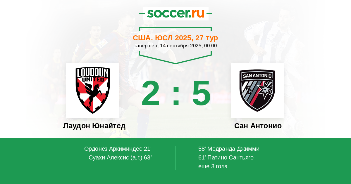 Лаудон Юнайтед - Сан Антонио: обзор матча 14 сентября 2025