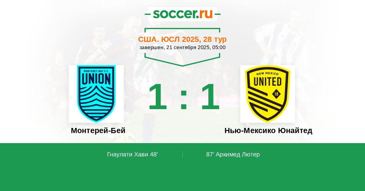 Монтерей-Бей - Нью-Мексико Юнайтед: обзор матча 21 сентября 2025