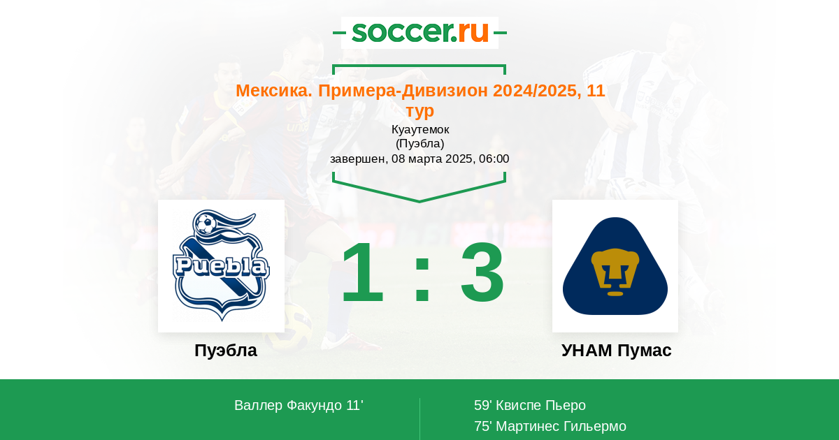 Пуэбла - УНАМ Пумас: обзор матча 8 марта 2025