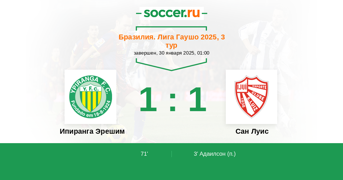 Ипиранга Эрешим - Сан Луис: обзор матча 30 января 2025