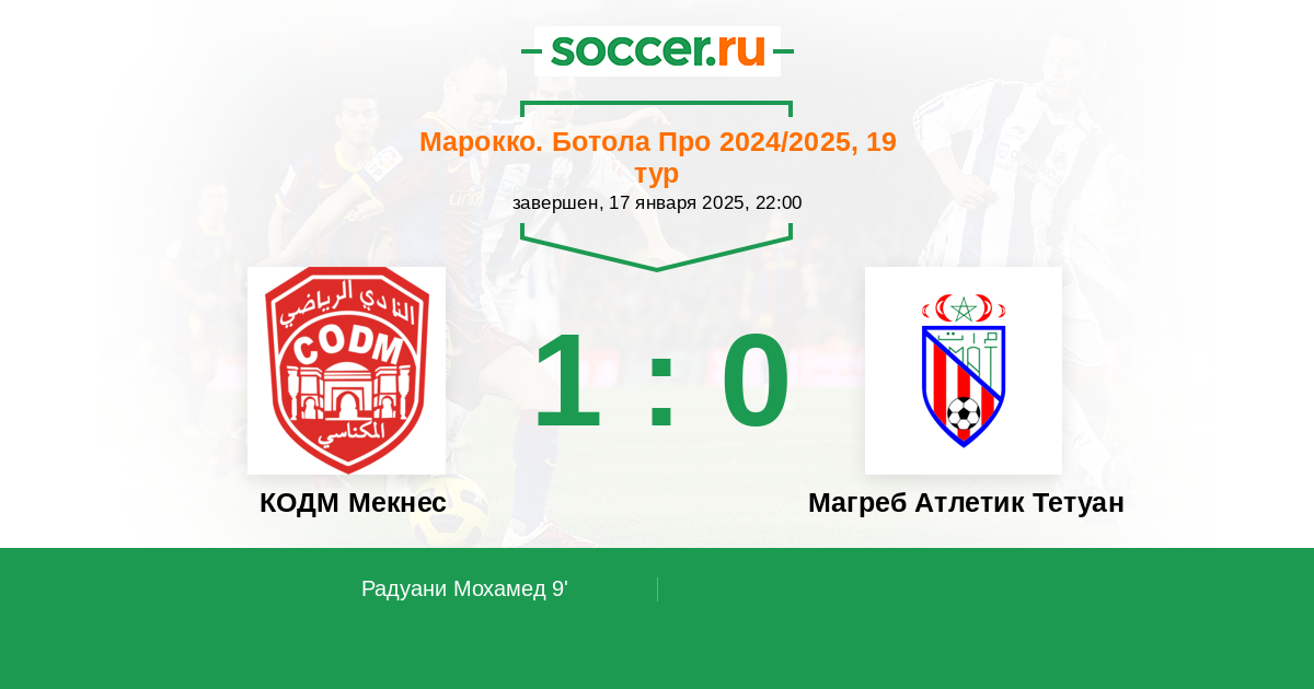 КОДМ Мекнес - Магреб Атлетик Тетуан: обзор матча 17 января 2025