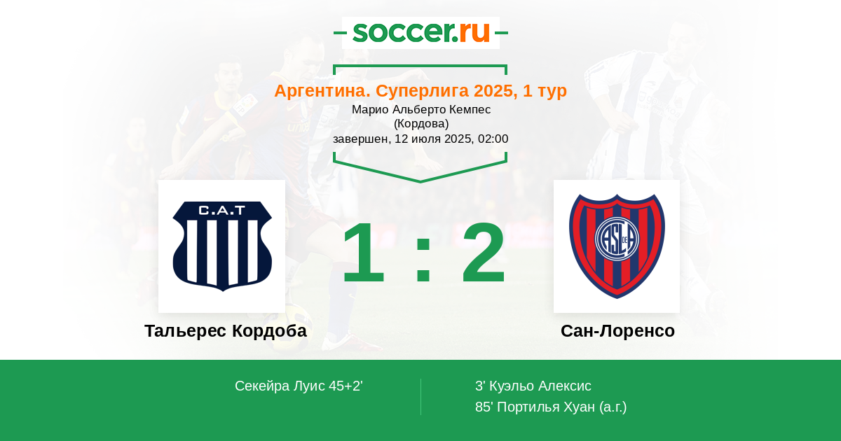 Тальерес Кордоба - Сан-Лоренсо: обзор матча 12 июля 2025