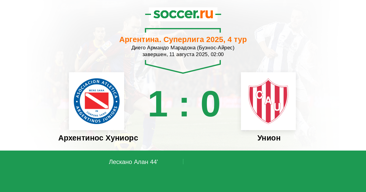 Архентинос Хуниорс - Унион: обзор матча 11 августа 2025