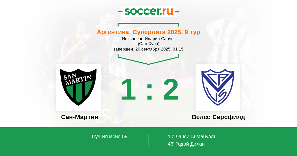 Сан-Мартин - Велес Сарсфилд: обзор матча 20 сентября 2025