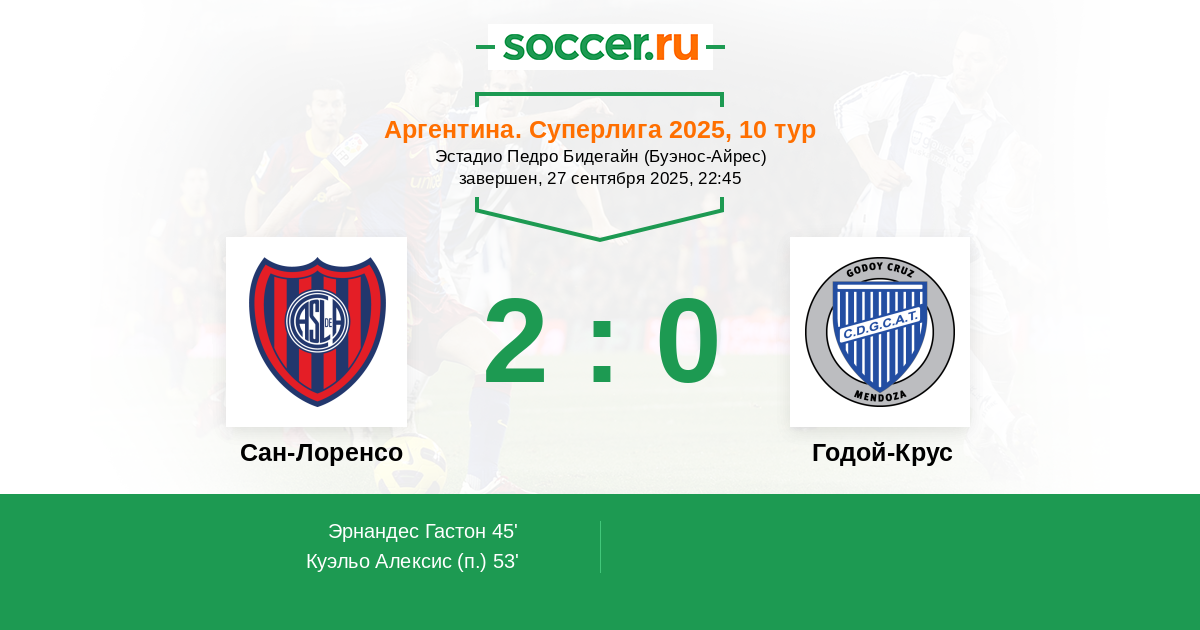 Сан-Лоренсо - Годой-Крус: обзор матча 27 сентября 2025
