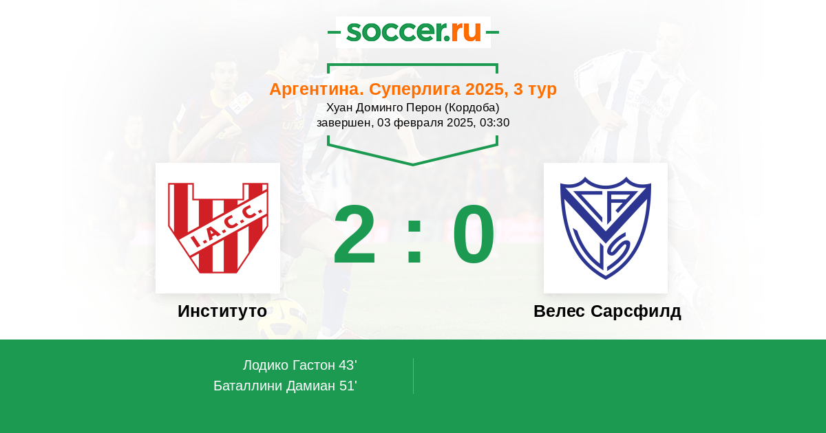 Институто - Велес Сарсфилд: обзор матча 3 февраля 2025