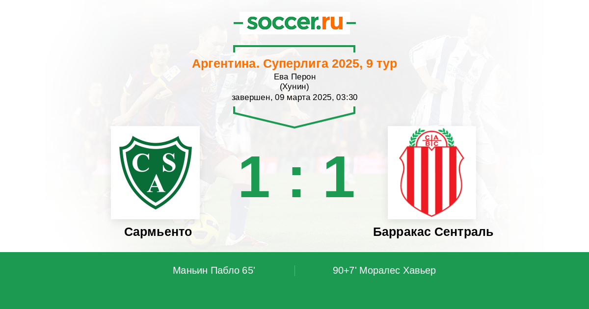 Сармьенто - Барракас Сентраль: обзор матча 9 марта 2025
