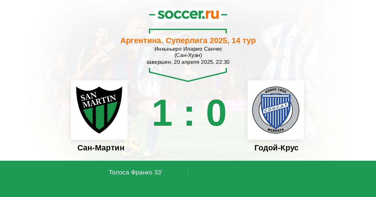 Сан-Мартин - Годой-Крус: обзор матча 20 апреля 2025