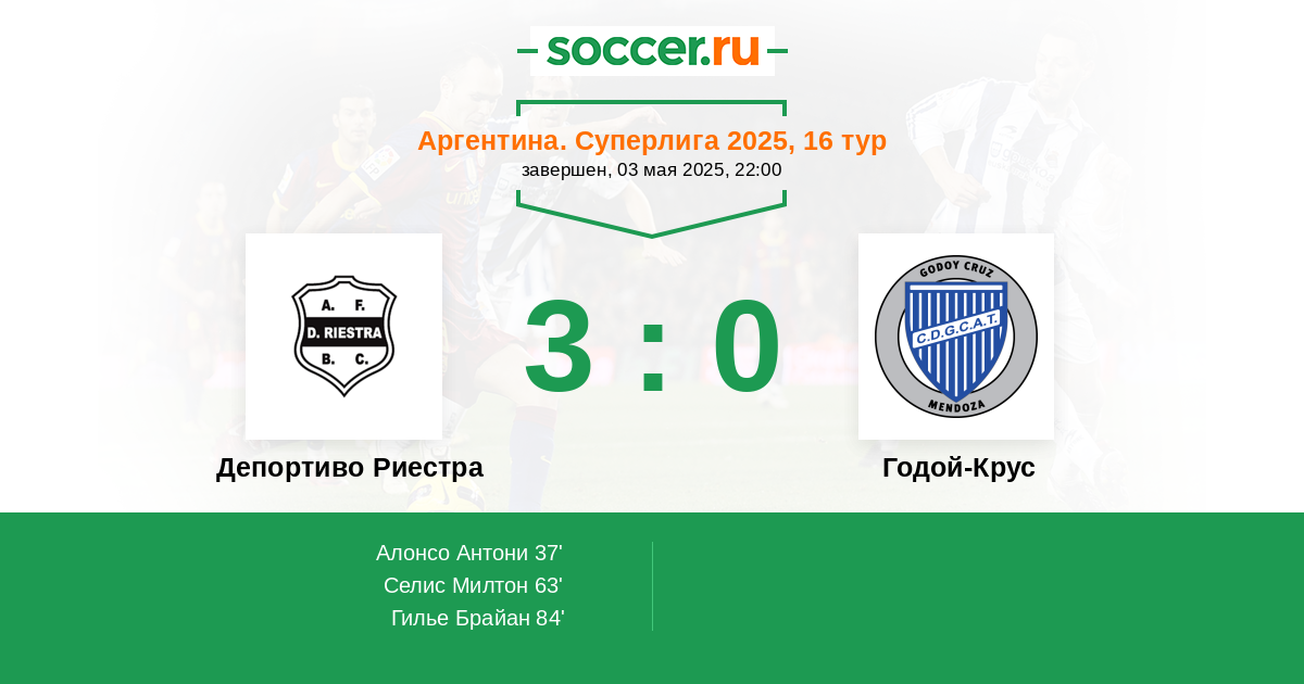Депортиво Риестра - Годой-Крус: обзор матча 3 мая 2025