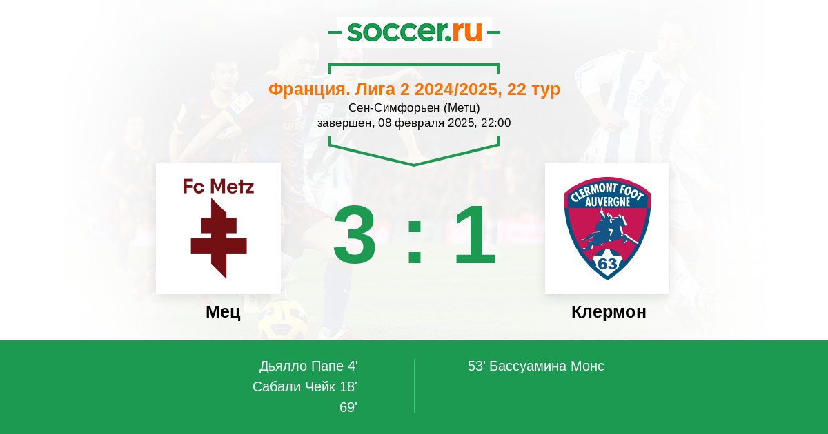 Мец - Клермон: обзор матча 8 февраля 2025