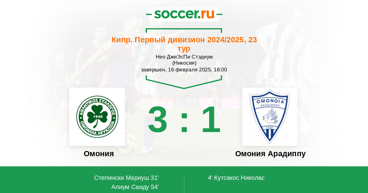 Омония - Омония Арадиппу: обзор матча 16 февраля 2025