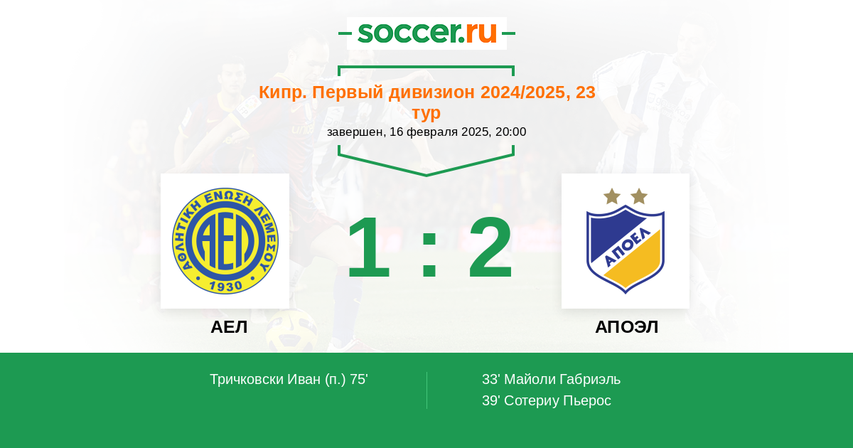 АЕЛ - АПОЭЛ: обзор матча 16 февраля 2025