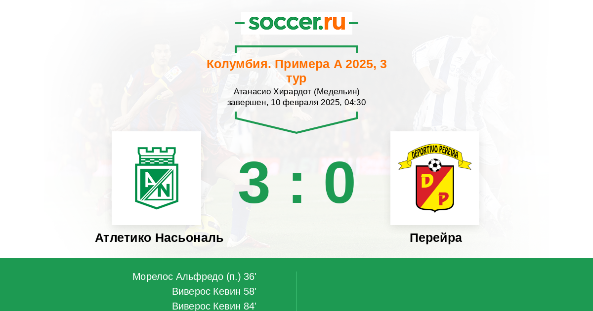 Атлетико Насьональ - Перейра: обзор матча 10 февраля 2025