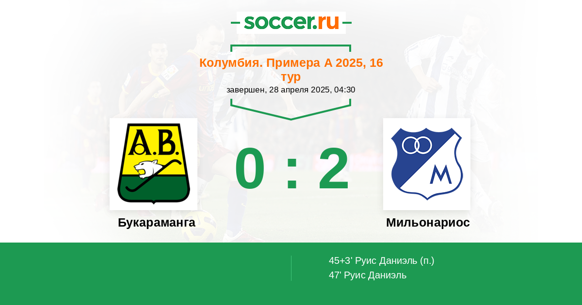 Букараманга - Мильонариос: обзор матча 28 апреля 2025