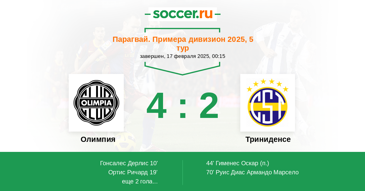 Олимпия - Триниденсе: обзор матча 17 февраля 2025