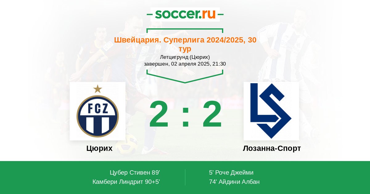 Цюрих - Лозанна-Спорт: обзор матча 2 апреля 2025