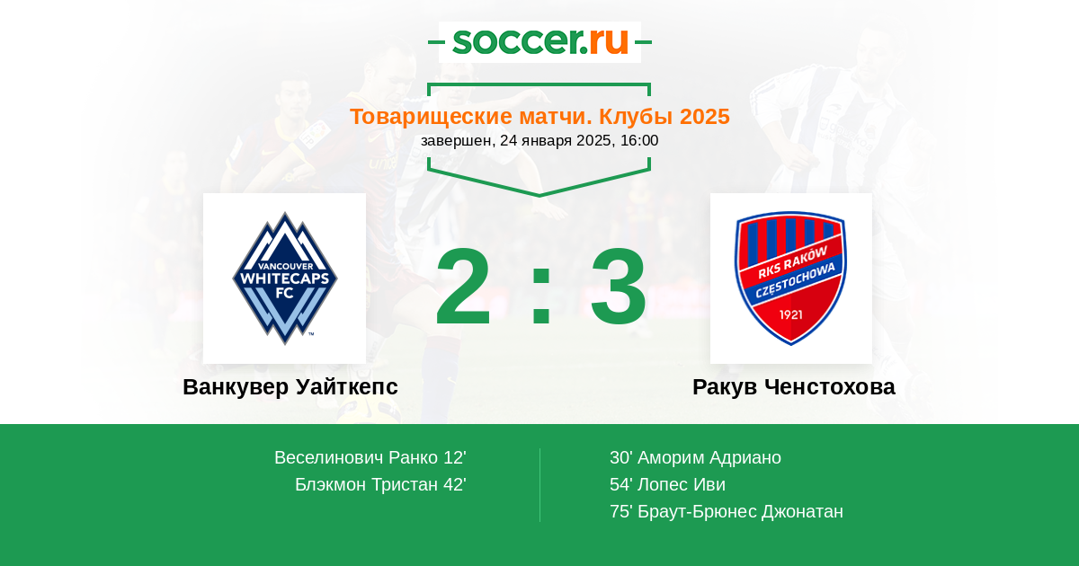 Ванкувер Уайткепс - Ракув Ченстохова: обзор матча 24 января 2025