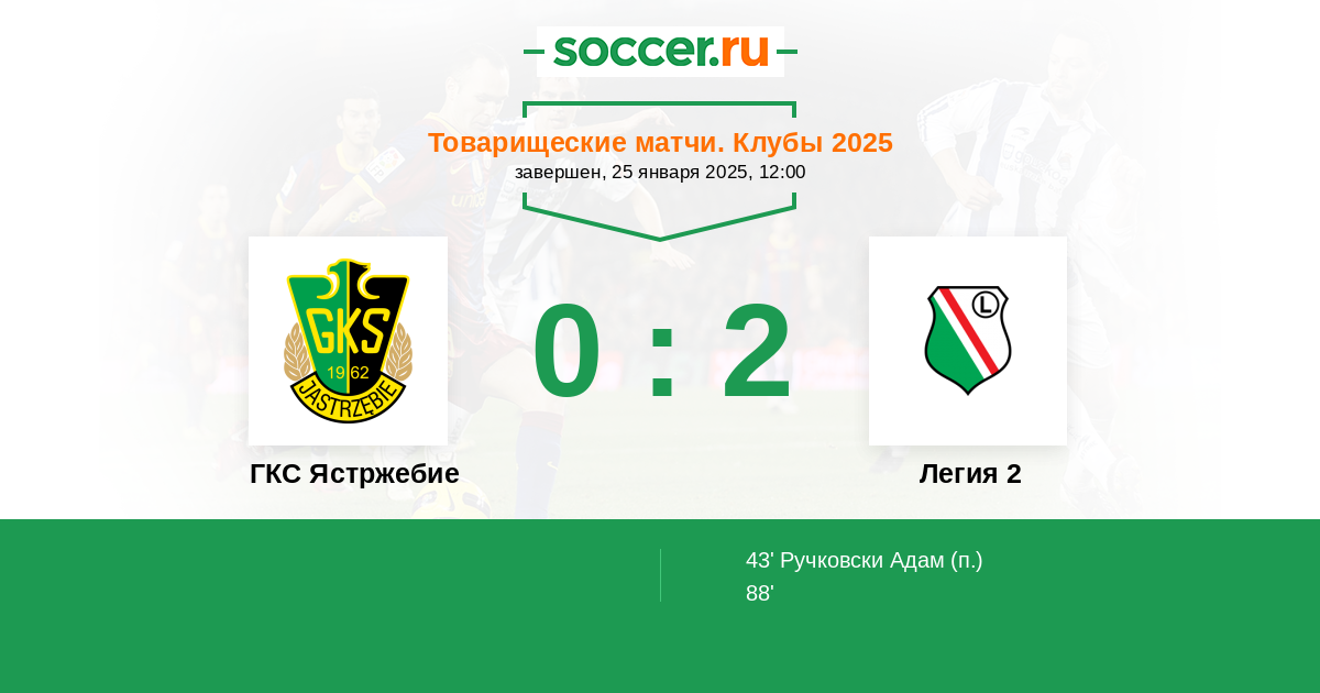 ГКС Ястржебие - Легия 2: обзор матча 25 января 2025