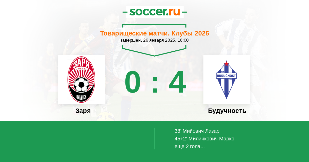 Заря - Будучность: обзор матча 26 января 2025