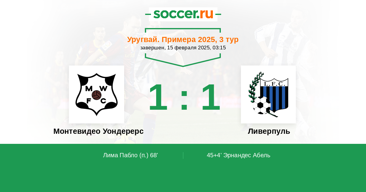 Монтевидео Уондерерс - Ливерпуль: обзор матча 15 февраля 2025