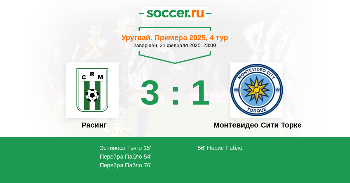 Расинг - Монтевидео Сити Торке: обзор матча 21 февраля 2025