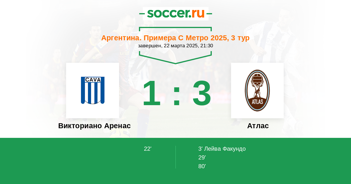Викториано Аренас - Атлас: обзор матча 22 марта 2025