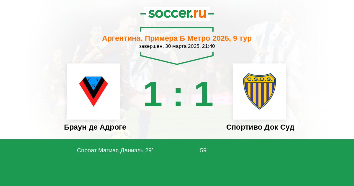 Браун де Адроге - Спортиво Док Суд: обзор матча 30 марта 2025