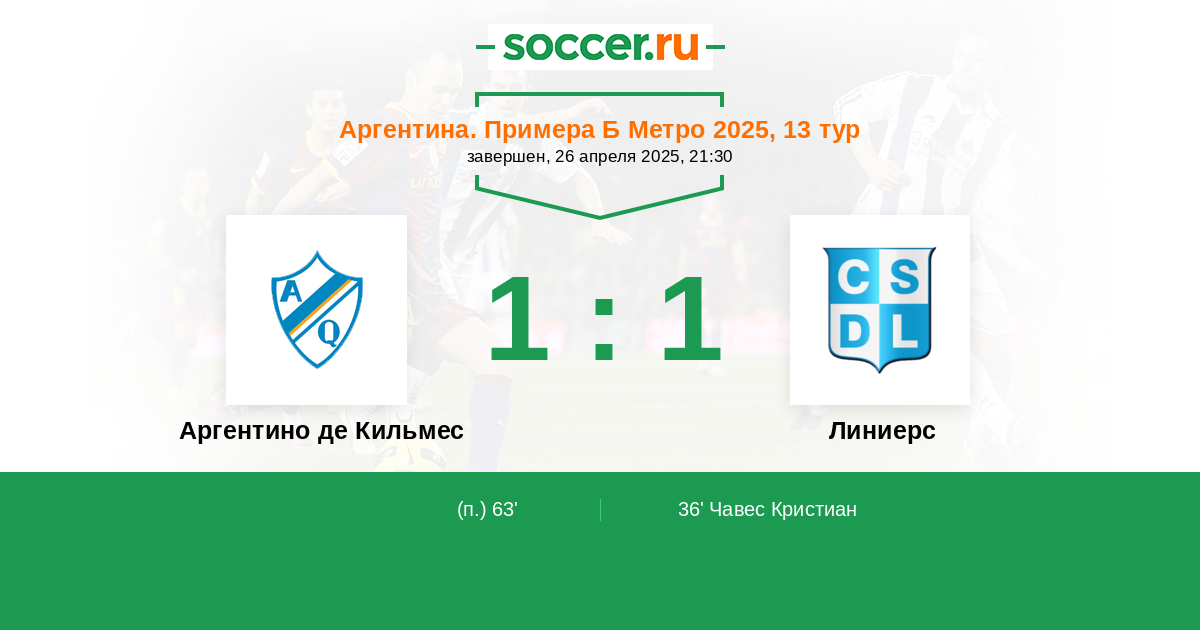 Аргентино де Кильмес - Линиерс: обзор матча 26 апреля 2025