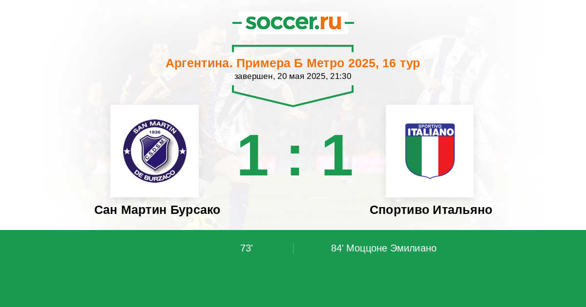 Сан Мартин Бурсако - Спортиво Итальяно: обзор матча 20 мая 2025