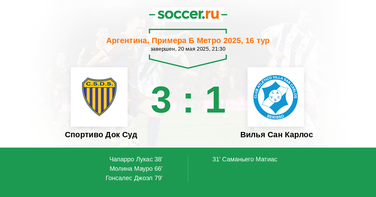 Спортиво Док Суд - Вилья Сан Карлос: обзор матча 20 мая 2025