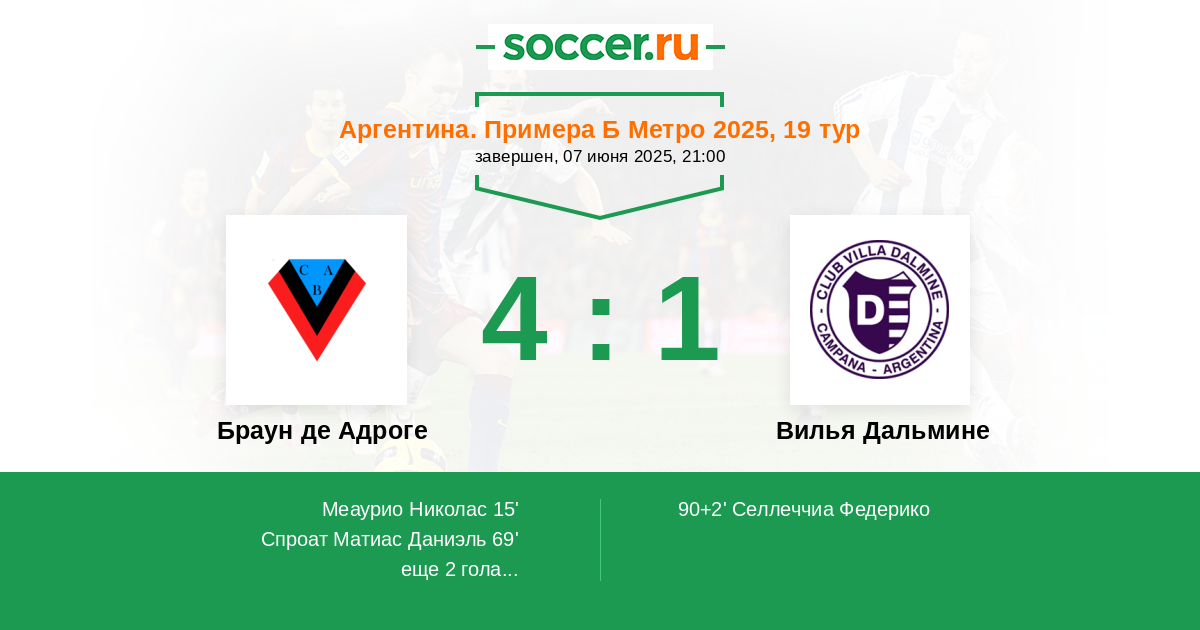 Браун де Адроге - Вилья Дальмине: обзор матча 7 июня 2025